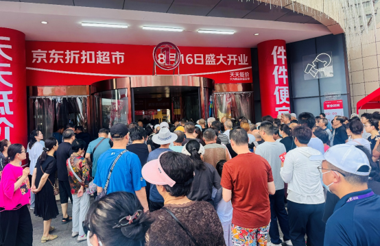 8月16日,京东折扣超市全国首店在河北涿州开业。作为全国首个大型折扣超市,涿州店开业首日即吸引近6万顾客涌入,火爆程度远超商场客容量,导致门店于上午9点开业伊始便紧急启动限流措施,并持续至深夜11点自然闭店。